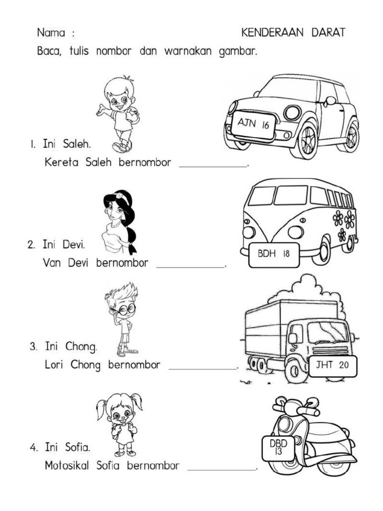Web Lembaran kerja mewarna tema kenderaan darat- lembaran kerja mewarna adalah penting bagi murid murid pendidikan khasprasekolah mahupun kanak. Jan 14 2021 - lembaran prasekolah. Web Savesave lembaran kerja prasekolah tema kenderaan darat for later.