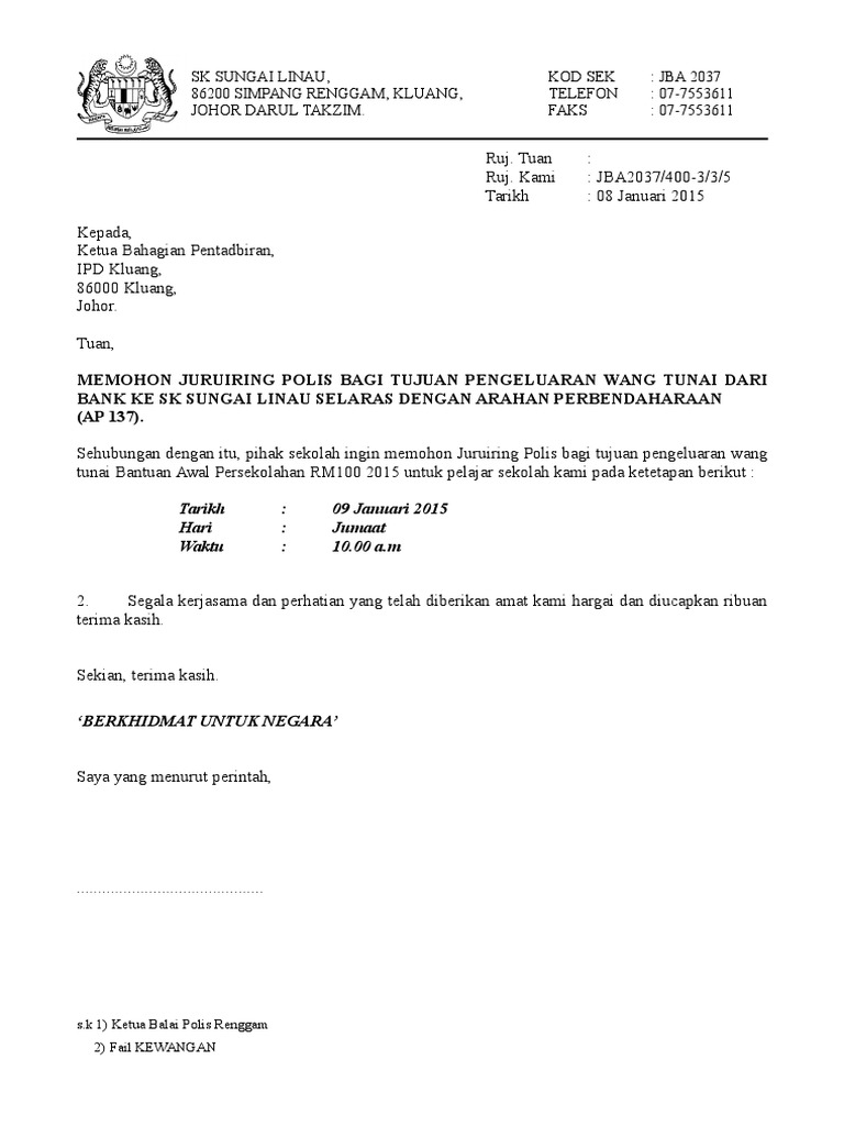 Surat Memohon Pengiring Polis Untuk Ke Bank Pdf